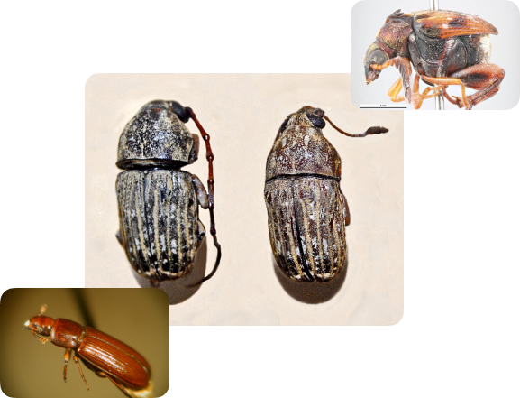 Các loại côn trùng gây hại trong cà phê và các loại đậu bao gồm mọt cà phê (Araecerus fasciculatus), mọt đậu (Callosobruchus spp.) và bọ cánh cứng ăn bột (Tribolium spp.). Những loài côn trùng này có thể làm giảm chất lượng và giá trị sản phẩm, gây mất mát về kinh tế và ảnh hưởng đến uy tín của nhà sản xuất.